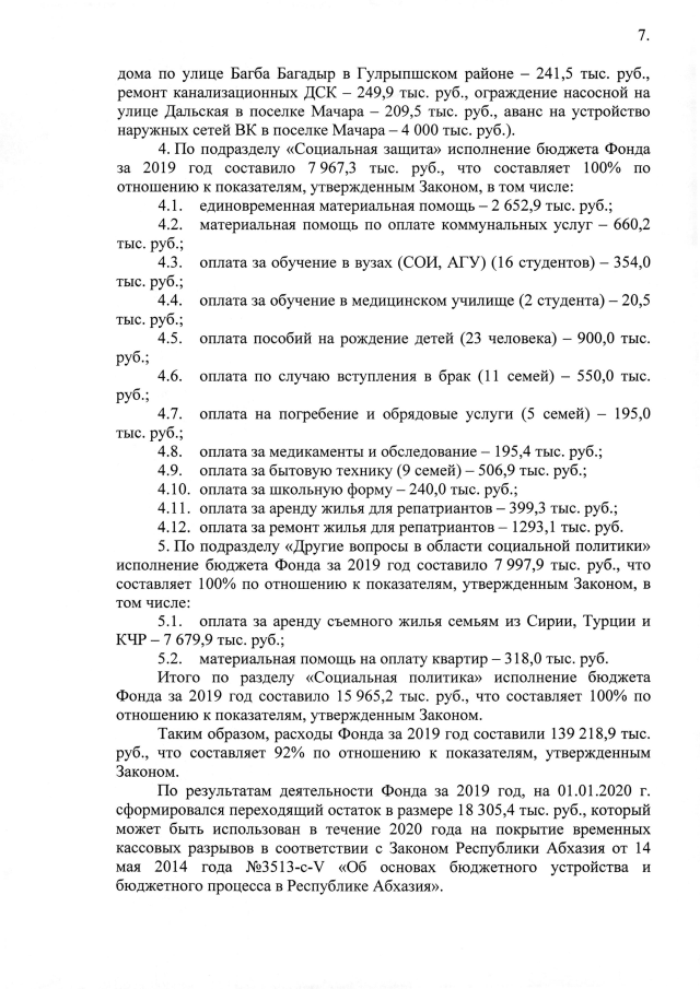 Постановление Кабинета Министров Республики Абхазия от 27.03.2020 №49 "Об исполнении бюджета Фонда репатриации Республики Абхазия за 2019 год"