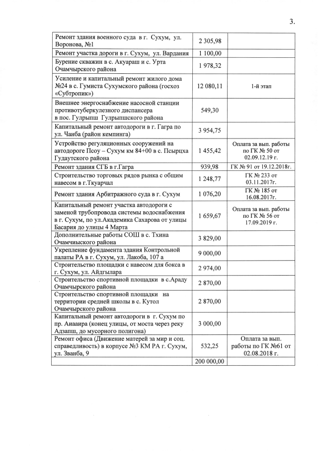 Постановление Кабинета Министров Республики Абхазия от 31.01.2020 №6 "О перечне объектов, подлежащих строительству, ремонту и реконструкции в 2020 году за счет средств республиканского бюджета"