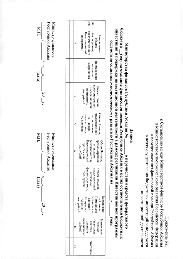 Постановление Кабинета Министров Республики Абхазия от 22.04.2020 №61 "Об одобрении проекта Соглашения между Министерством финансов Республики Абхазия и Министерством экономического развития Российской Федерации о порядке оказания финансовой помощи Республике Абхазия в целях осуществления бюджетных инвестиций и поддержки инвестиционной деятельности и проекта Соглашения между Министерством финансов Республики Абхазия и Министерством экономического развития Российской Федерации о порядке оказания финансовой помощи в целях социально-экономического развития Республики Абхазия "