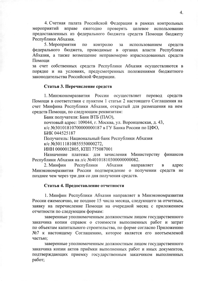 Постановление Кабинета Министров Республики Абхазия от 22.04.2020 №61 "Об одобрении проекта Соглашения между Министерством финансов Республики Абхазия и Министерством экономического развития Российской Федерации о порядке оказания финансовой помощи Республике Абхазия в целях осуществления бюджетных инвестиций и поддержки инвестиционной деятельности и проекта Соглашения между Министерством финансов Республики Абхазия и Министерством экономического развития Российской Федерации о порядке оказания финансовой помощи в целях социально-экономического развития Республики Абхазия "