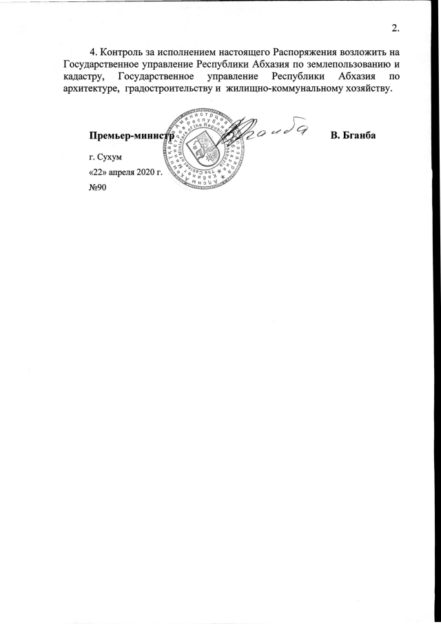 РАСПОРЯЖЕНИЕ Кабинета Министров Республики Абхазия от 22.04.2020 №90 "О предоставлении ИП Ажиба Р.М. в аренду земельного участка в г. Гагра площадью 0,012 га для установки кафе из сборно-разборной конструкции"