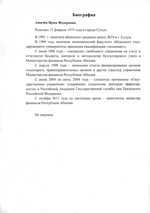 РАСПОРЯЖЕНИЕ Кабинета Министров Республики Абхазия от 20.11.2019 №198 "О назначении Амичба И.Ф. первым заместителем министра финансов Республики Абхазия"