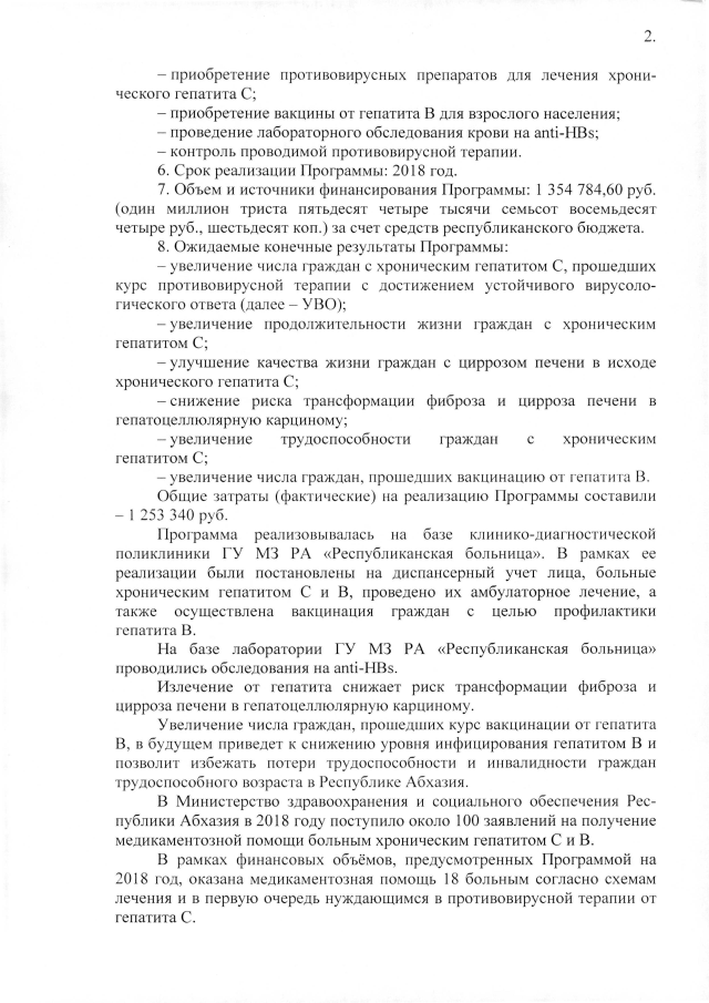 РАСПОРЯЖЕНИЕ Кабинета Министров Республики Абхазия от 20.11.2019 №202 "Об итоговых отчетах о реализации ведомственных целевых программ Министерства здравоохранении и социального обеспечения Республики Абхазии, принятых на 2018 год"