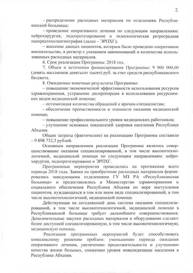 РАСПОРЯЖЕНИЕ Кабинета Министров Республики Абхазия от 20.11.2019 №202 "Об итоговых отчетах о реализации ведомственных целевых программ Министерства здравоохранении и социального обеспечения Республики Абхазии, принятых на 2018 год"