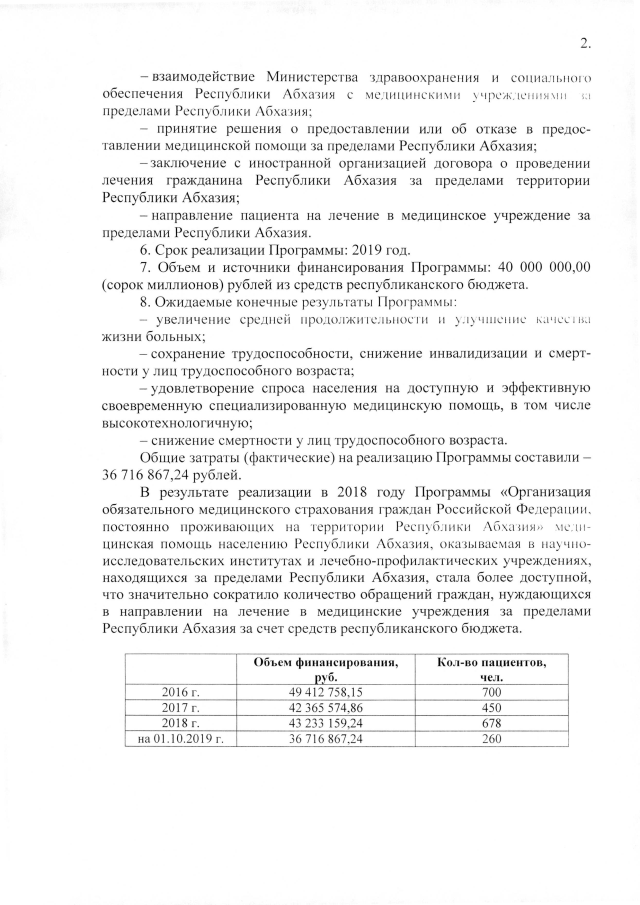 РАСПОРЯЖЕНИЕ Кабинета Министров Республики Абхазия от 20.11.2019 №203 "Об отчетах за три квартала 2019 года о реализации ведомственных целевых программ Министерства здравоохранении и социального обеспечения Республики Абхазии, принятых на 2019 год"