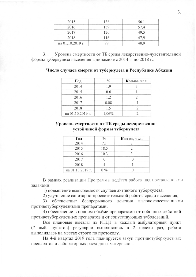 РАСПОРЯЖЕНИЕ Кабинета Министров Республики Абхазия от 20.11.2019 №203 "Об отчетах за три квартала 2019 года о реализации ведомственных целевых программ Министерства здравоохранении и социального обеспечения Республики Абхазии, принятых на 2019 год"