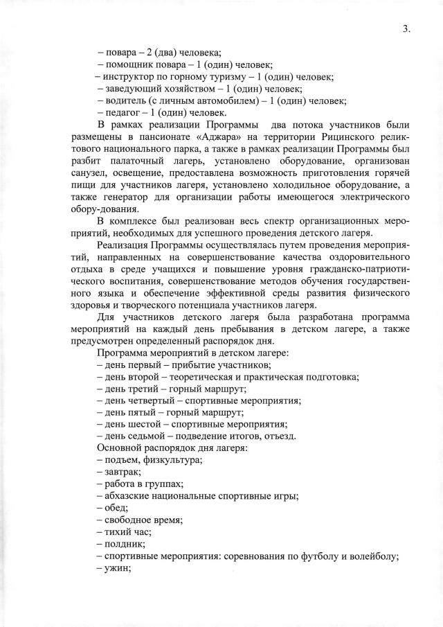РАСПОРЯЖЕНИЕ Кабинета Министров Республики Абхазия от 20.11.2019 №207 "Об итоговом отчете о реализации межведомственной целевой программы "Детский лагерь "Ажэеипшьаа-2019""