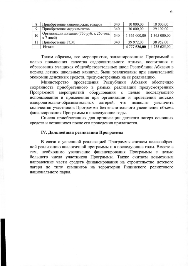 РАСПОРЯЖЕНИЕ Кабинета Министров Республики Абхазия от 20.11.2019 №207 "Об итоговом отчете о реализации межведомственной целевой программы "Детский лагерь "Ажэеипшьаа-2019""