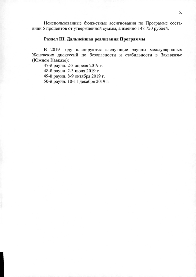РАСПОРЯЖЕНИЕ Кабинета Министров Республики Абхазия от 10.12.2019 №250 "Об итоговом отчете о реализации межведомственной целевой программы на 2018 год "Финансово-материальное обеспечение деятельности компетентных центральных органов государственного управления и должностных лиц, направленной на реализацию внешнеполитических задач по представлению интересов Республики Абхазия на международных Женевских дискуссиях по безопасности и стабильности на Южном Кавказе" от 28 декабря 2017 года №183"