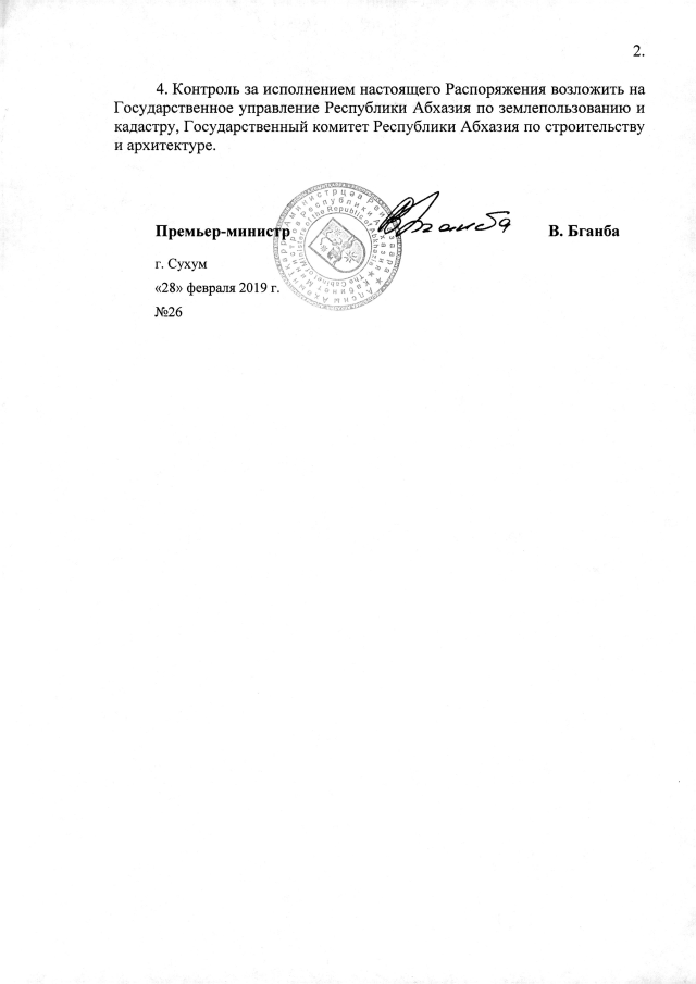 РАСПОРЯЖЕНИЕ Кабинета Министров Республики Абхазия от 28.02.2019 №26 "О даче согласия Администрации Гудаутского района на предоставление ИП Сакания М.Г. 0,60 га земли в с. Приморское для строительства объекта гостиничного типа"