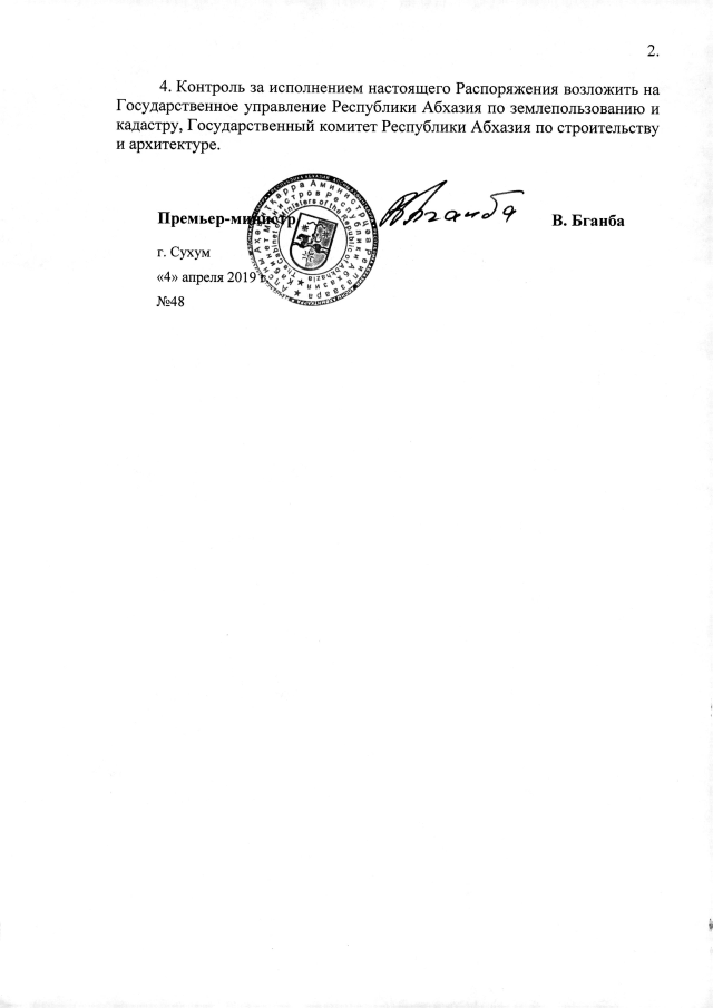 РАСПОРЯЖЕНИЕ Кабинета Министров Республики Абхазия от 04.04.2019 №48 "О даче согласия Администрации Гагрского района на предоставление ИП Агрба Д.Д. 0,08 га земли в п. Цандрыпш для строительства гостиницы"
