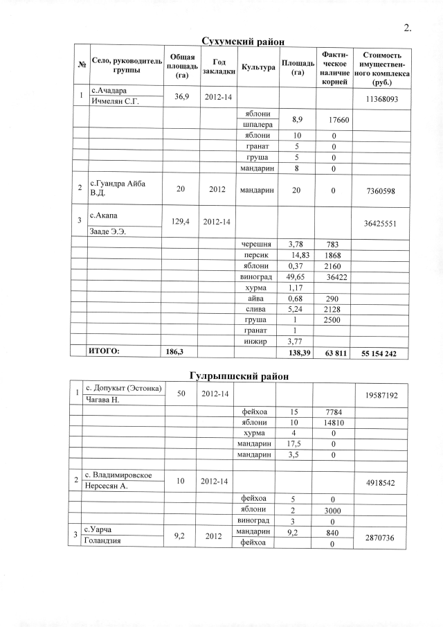 РАСПОРЯЖЕНИЕ Кабинета Министров Республики Абхазия от 08.05.2019 №73 "О многолетних насаждениях, заложенных в рамках реализации Комплексного плана содействия социально-экономическому развитию Республики Абхазия на 2010-2012 годы"