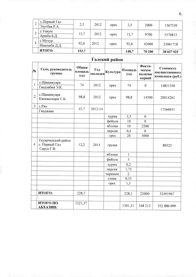 РАСПОРЯЖЕНИЕ Кабинета Министров Республики Абхазия от 08.05.2019 №73 "О многолетних насаждениях, заложенных в рамках реализации Комплексного плана содействия социально-экономическому развитию Республики Абхазия на 2010-2012 годы"