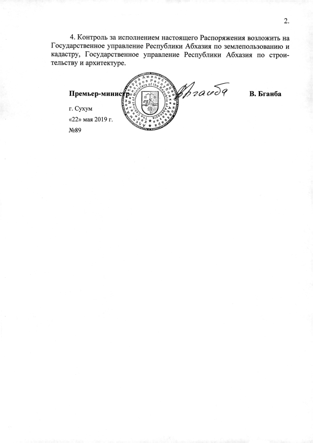 РАСПОРЯЖЕНИЕ Кабинета Министров Республики Абхазия от 22.05.2019 №89 "О даче согласия Администрации Гудаутского района на предоставление ИП Отырба Р.М. 0,10 га земли в с. Амжыкхуа для установки объекта общественного питания - строения облегченного сборно-разборного типа"