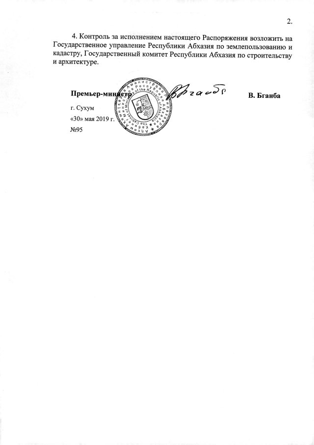РАСПОРЯЖЕНИЕ Кабинета Министров Республики Абхазия от 30.05.2019 №95 "О даче согласия Администрации Сухумского района на предоставление ООО "Феникс 2018" 0,50 га земли в с. Эшера для строительства объекта гостиничного типа"